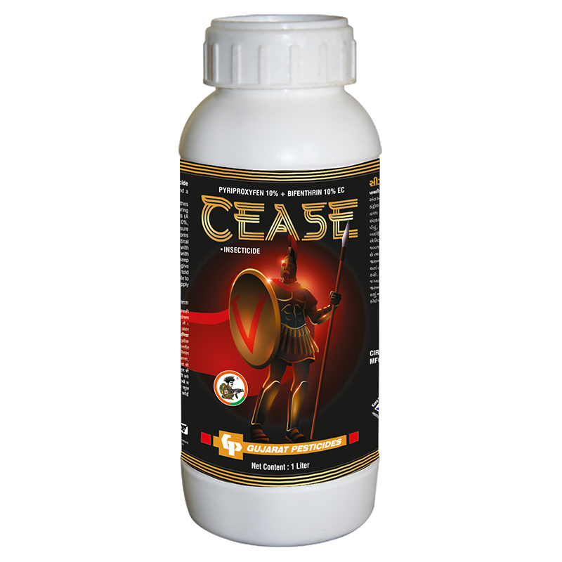 - CEASE (PYRIPROXYFEN 10% + BIFENTHRIN 10% EC) is a premix insecticide having Pyriproxyfen 10%+Bifenthrin 10%EC