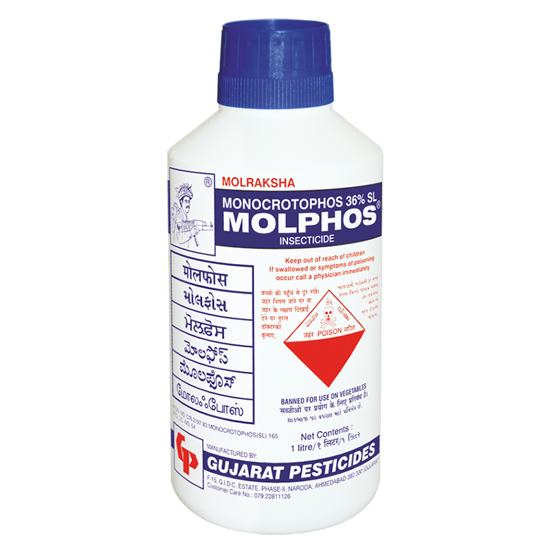 MOLPHOS ( MONOCROTOPHOS 36% SL ) Broad spectrum insecticide having action on sucking,chewing and boring insects. It also has good acaricidal action against large number of mite species. It has long residual action.Cholinesterase inhibitor.