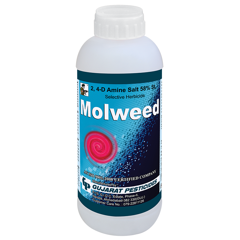 - MOLWEED (2,4-D AMINE SALT 58% SL) is highly soluble in water. It is absorbs by weeds faster than other herbicide.